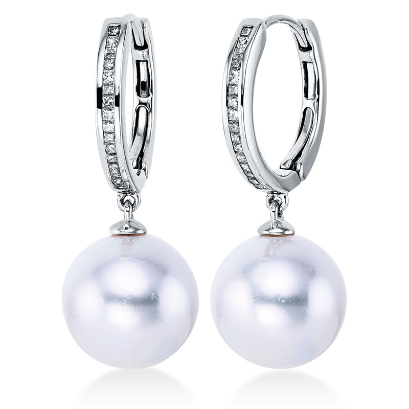 Ohrschmuck 18 kt WG, 32 Princ. 0,22 ct, W-si, 2 SS weiß 11-11,5 mm