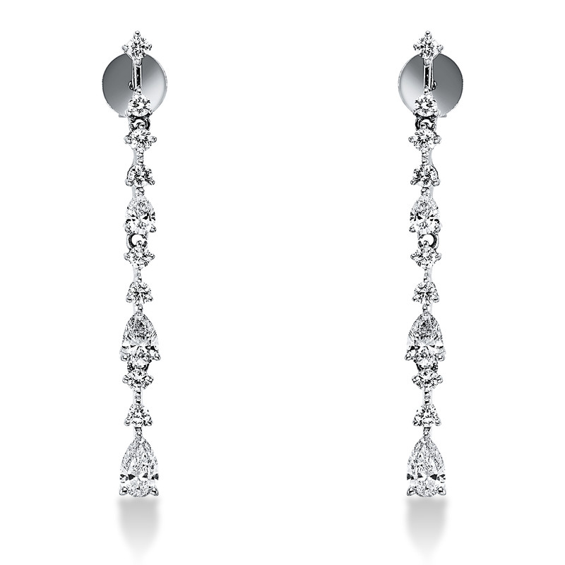 Ohrschmuck 18 kt WG, 4 Tropfen 0,65 ct, TW-vsi/si, 18 Fant-Schl. 0,48 ct, TW-vsi/si