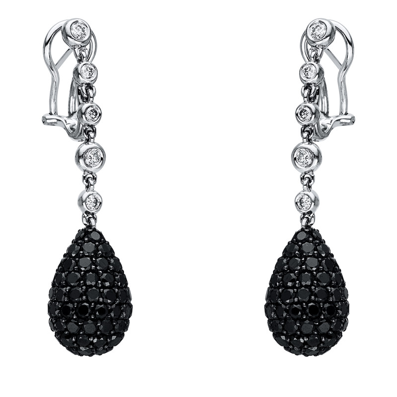 Ohrschmuck 18 kt WG, teils schwarz rhodiniert, 10 Brillanten 0,47 ct, TW-vsi/si, 188 Brillanten 8,91 ct, schwarz