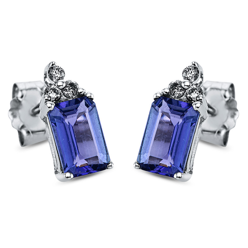 Ohrschmuck 4er-Krappe 14 kt WG, 6 Brillanten 0,09 ct, I-si, 2 Tansanit 1,10 ct blau, H:9,7 mm, B:3,8 mm