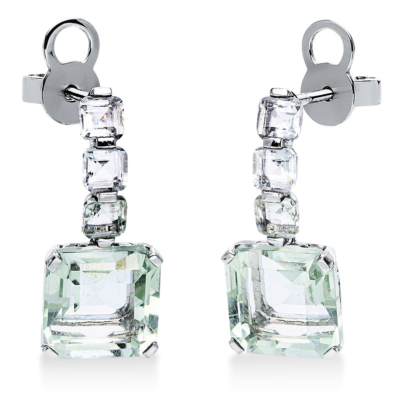 Ohrschmuck 4er-Krappe 18 kt WG, 2 Amethyste 5,10 ct grün, 6 Amethyste 0,90 ct grün, H:19,2 mm, B:8,1 mm
