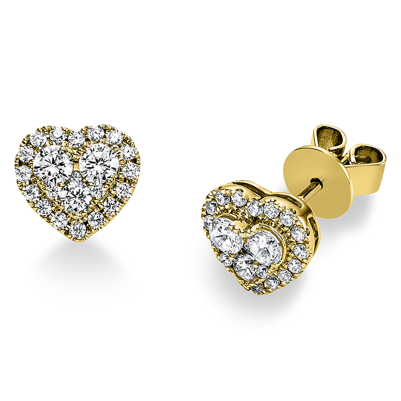 Ohrstecker 14 kt GG “Herz”, 6 Brillanten 0,36 ct, TW-si, 38 Brillanten 0,21 ct, TW-si