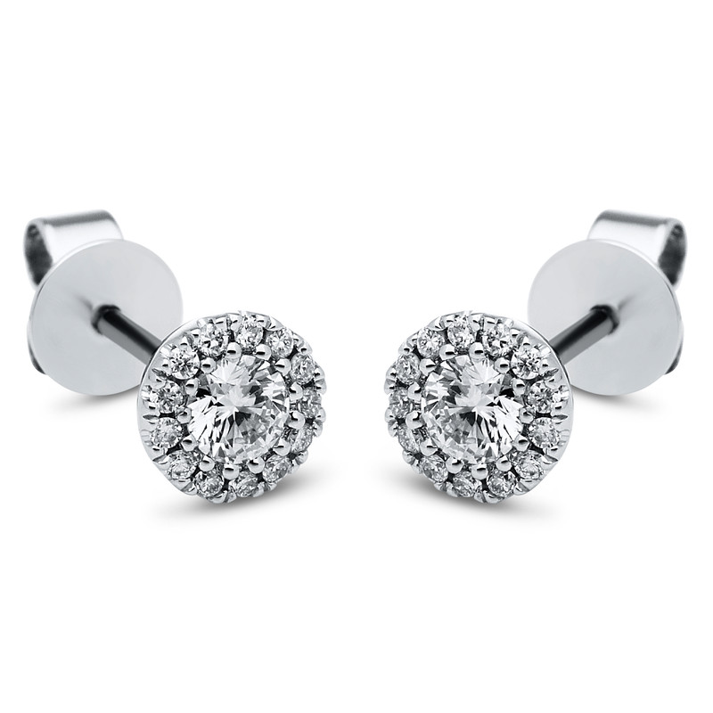 Ohrstecker 14 kt WG, 2 Brillanten 0,19 ct, TW-si, 26 Brillanten 0,07 ct, TW-si