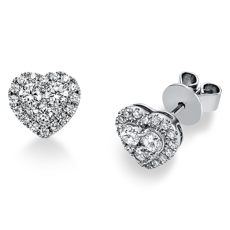 Ohrstecker 14 kt WG “Herz”, 44 Brillanten 0,59 ct, TW-si
