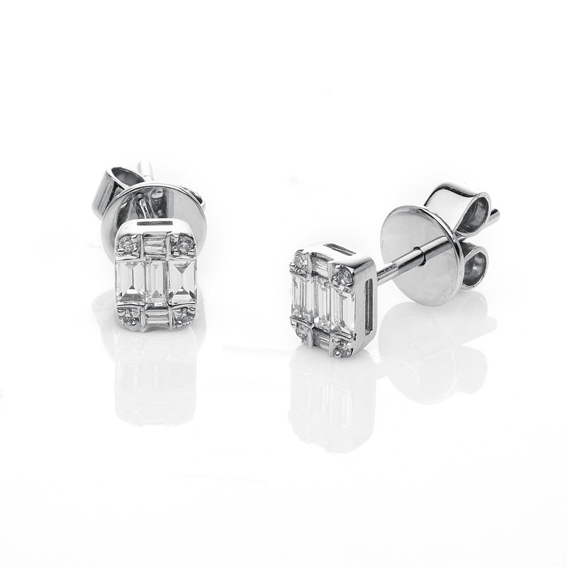 Ohrstecker 18 kt WG, 8 Brillanten 0,04 ct, TW-si, 10 Baguette 0,25 ct, TW-si, H:5,5 mm, B:4,1 mm