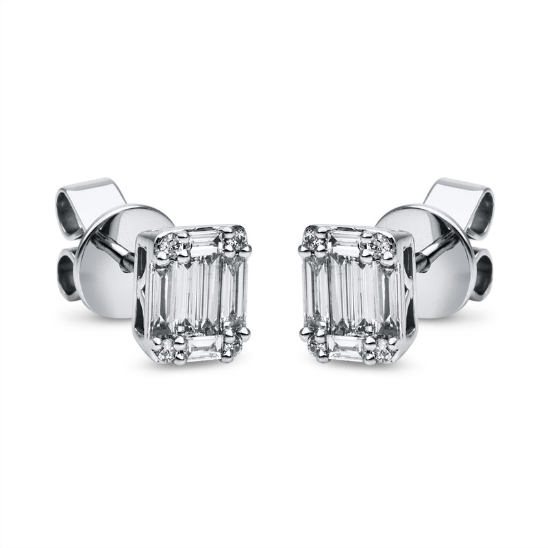 Ohrstecker 18 kt WG, 12 Baguette 0,29 ct, TW-si, 8 Brillanten 0,04 ct, TW-si, H:6,0 mm, B:4,6 mm