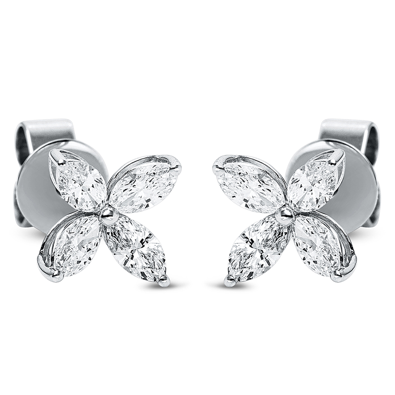 Ohrstecker 18 kt WG, 8 Navette 0,73 ct, TW-si, H:7,7 mm, B:7,6 mm