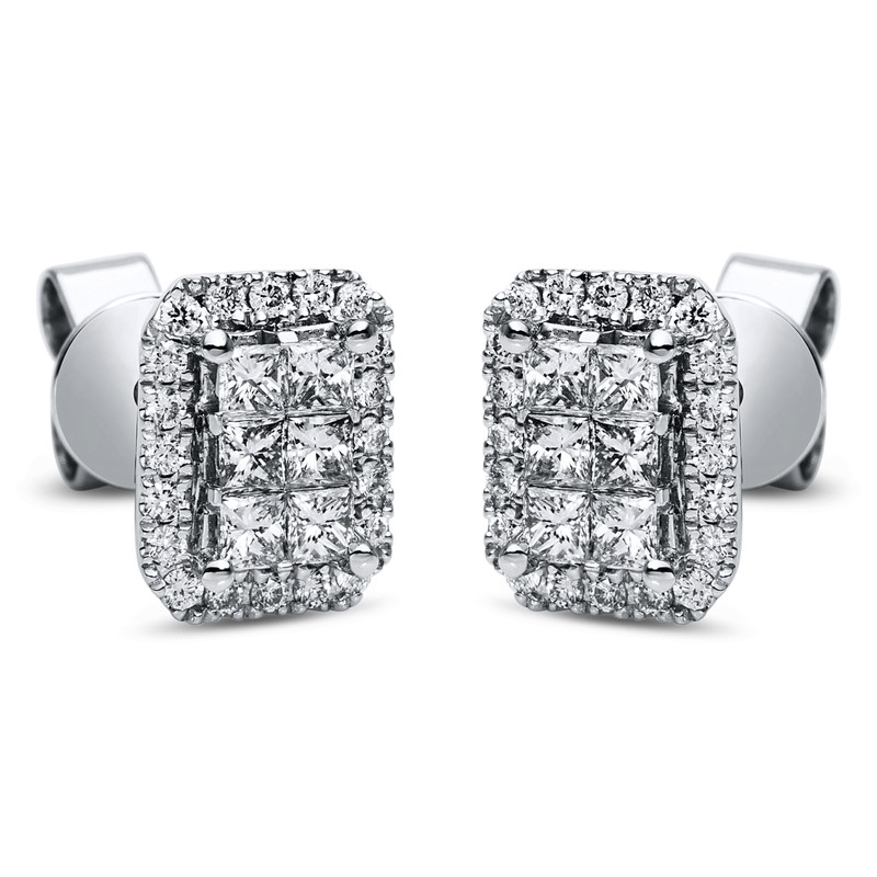 Ohrstecker 18 kt WG, 12 Princ. 0,54 ct, TW-si, 40 Brillanten 0,23 ct, TW-si
