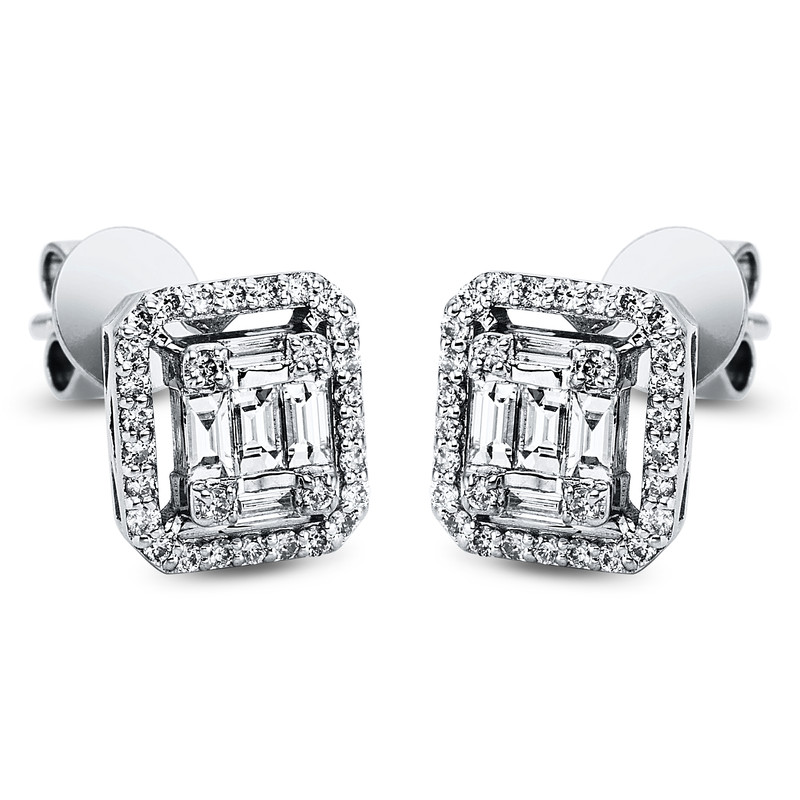 Ohrstecker 18 kt WG, 70 Fant-Schl. 0,49 ct, TW-si, H:8,6 mm, B:7,6 mm, S:4,5 mm
