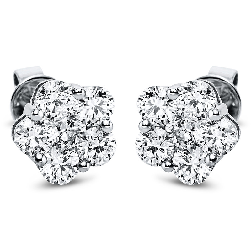 Ohrstecker 18 kt WG, 12 Brillanten 2,20 ct, TW-si, H:9,2 mm, B:9,4 mm, S:3,7 mm