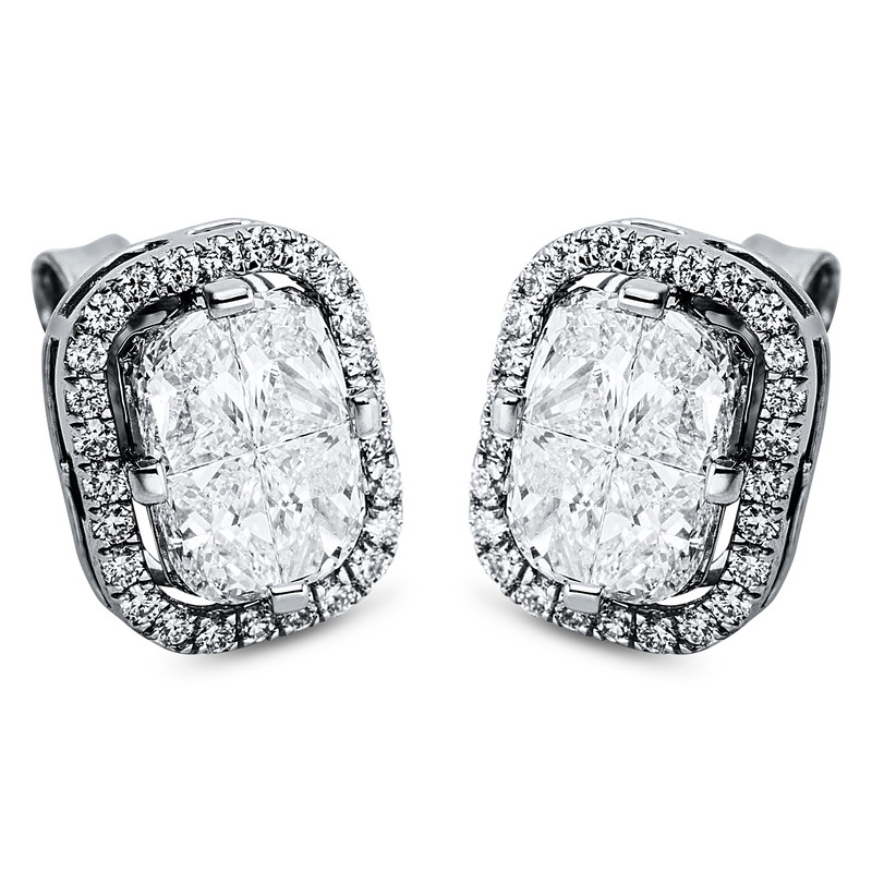 Ohrstecker 18 kt WG, 8 Fant-Schl. 1,17 ct, F-vsi, 52 Brillanten 0,27 ct, F-vsi, H:10,5 mm, B:8,3 mm, S:4,1 mm