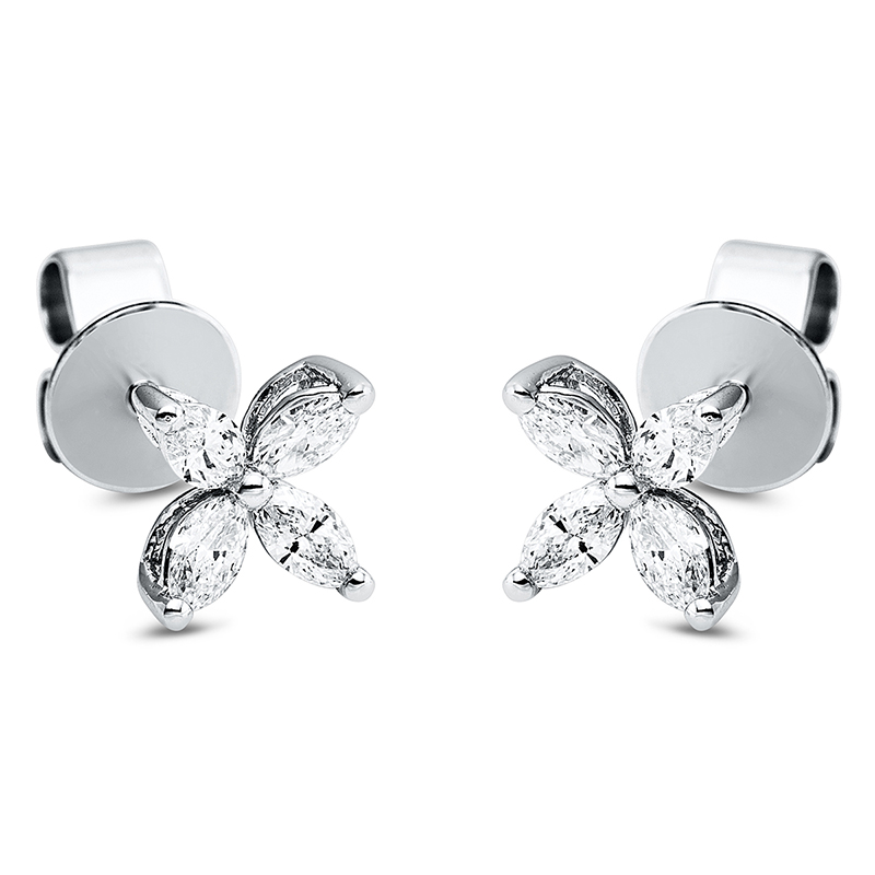 Ohrstecker 18 kt WG, 8 Navette 0,32 ct, TW-si