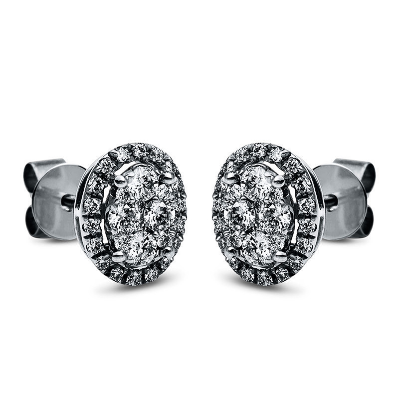 Ohrstecker 18 kt WG “Oval”, 8 Brillanten 0,31 ct, TW-si, 48 Brillanten 0,20 ct, TW-si, H:9,0 mm, B:7,4 mm
