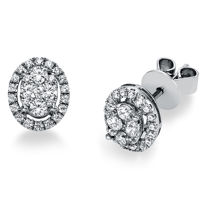 Ohrstecker 18 kt WG “Oval”, 8 Brillanten 0,29 ct, TW-si, 48 Brillanten 0,20 ct, TW-si