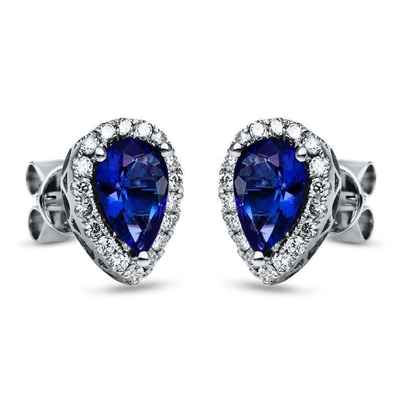 Ohrstecker 3er-Krappe 14 kt WG, 36 Brillanten 0,53 ct, TW-si, 2 Tansanit 2,83 ct blau