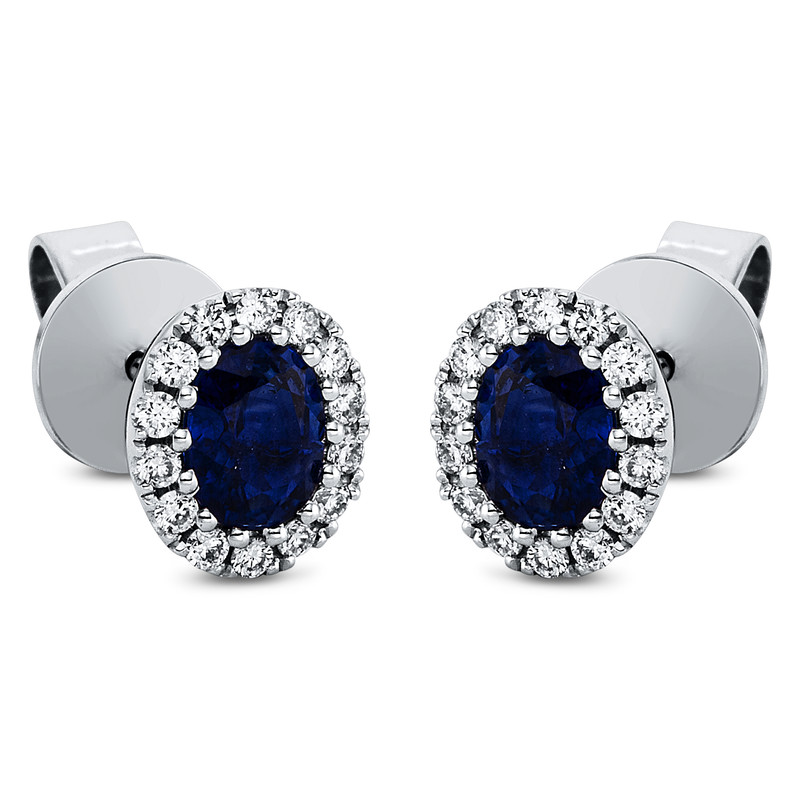 Ohrstecker 4er-Krappe 18 kt WG, 28 Brillanten 0,19 ct, TW-si, 2 Saphire 0,83 ct blau