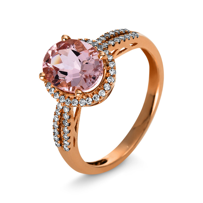 Ring 10 kt RG, 56 Brillanten 0,22 ct, TW-si, 1 Morganit 1,59 ct pink, Weite:53