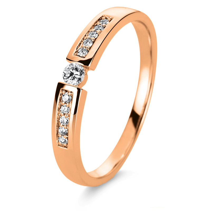 Ring 14 kt RG, poliert, 11 Brillanten 0,13 ct, TW-si, B:2,9 mm, Weite:54