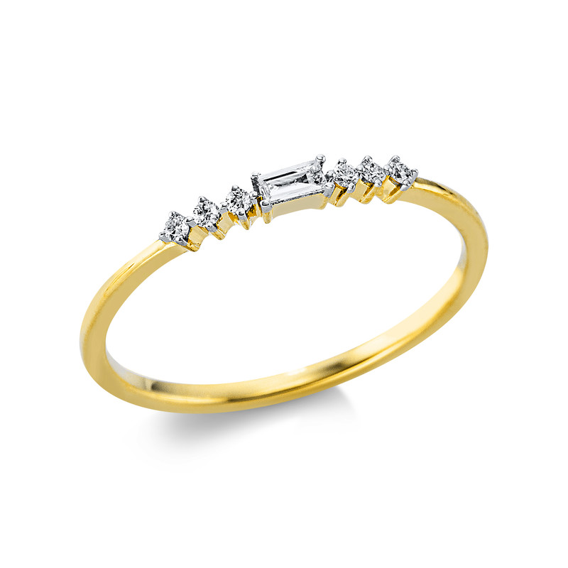 Ring 18 kt GG+WG, 1 Bag. 0,03 ct, TW-si, 6 Brillanten 0,04 ct, TW-si, B:1,9 mm, Weite:54