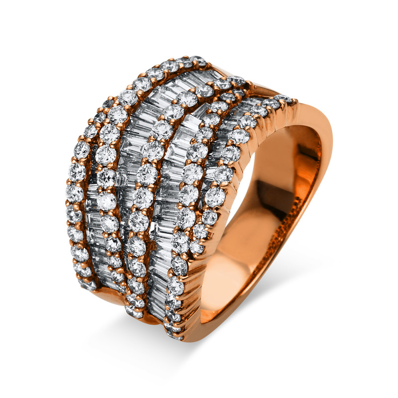 Ring 18 kt RG, 49 Trapeze 166,00 ct, TW-vsi/si, 69 Brillanten 1,20 ct, TW-vsi/si, Weite:54