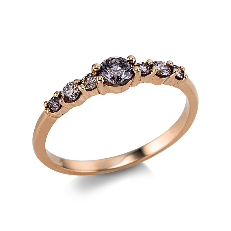 Ring 18 kt RG, 7 Brillanten 0,45 ct, braun, H:3,8 mm, Weite:53
