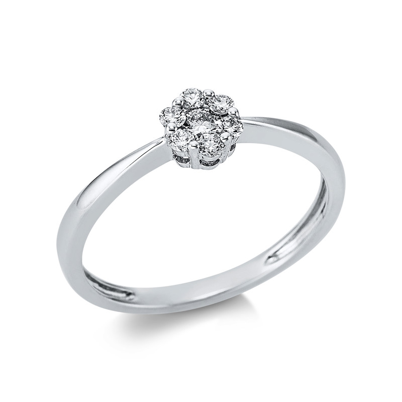 Ring 18 kt WG, 1 Brill. 0,07 ct, TW-si, 6 Brillanten 0,13 ct, TW-si, Weite:54
