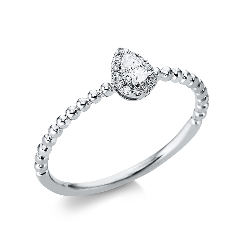 Ring 18 kt WG, 1 Tropfen 0,10 ct, TW-si, 13 Diamanten 0,04 ct, TW-si, H:4,4 mm, B:6,0 mm, Weite:53
