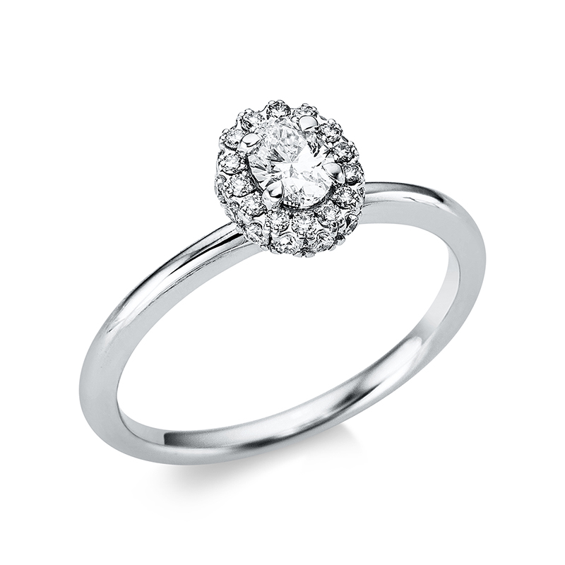 Ring 18 kt WG, 1 Oval 0,30 ct, TW-si, 28 Brillanten 0,22 ct, TW-si, Weite:54