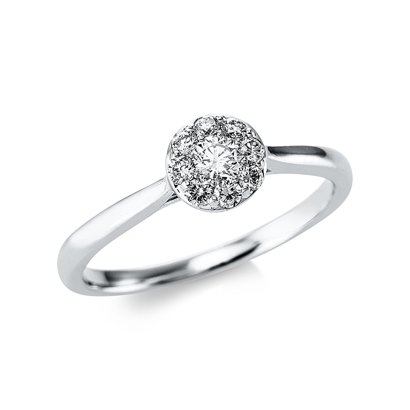 Ring 18 kt WG, 1 Brill. 0,20 ct, TW-si, 8 Brillanten 0,20 ct, TW-si, Weite:54