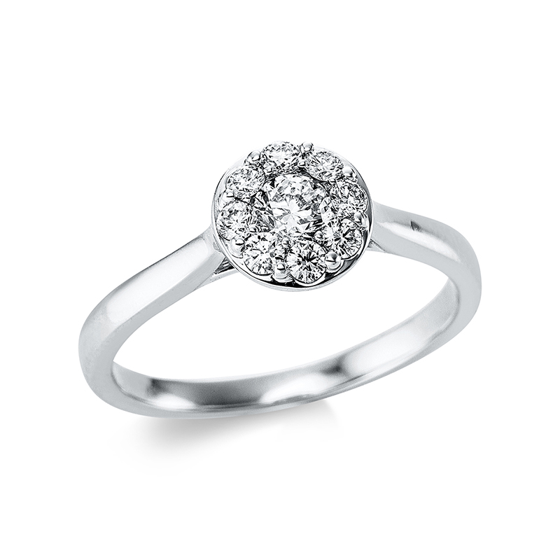 Ring 18 kt WG, 1 Brill. 0,25 ct, TW-si, 8 Brillanten 0,25 ct, TW-si, Weite:54