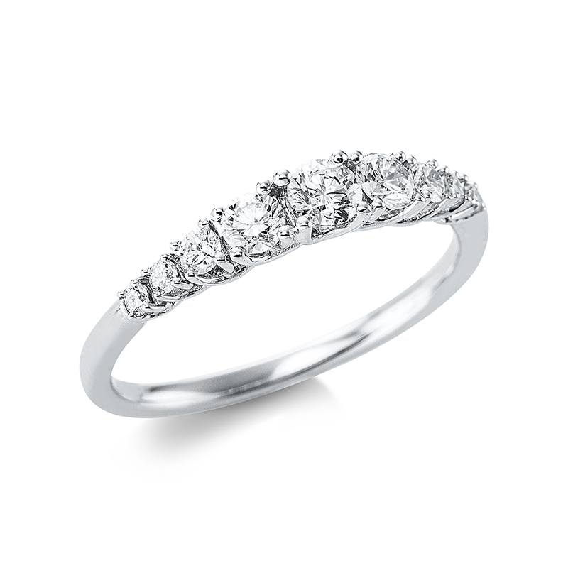 Ring 18 kt WG, 1 Brill. 0,15 ct, TW-si, 8 Brillanten 0,35 ct, TW-si, H:3,4 mm, Weite:54
