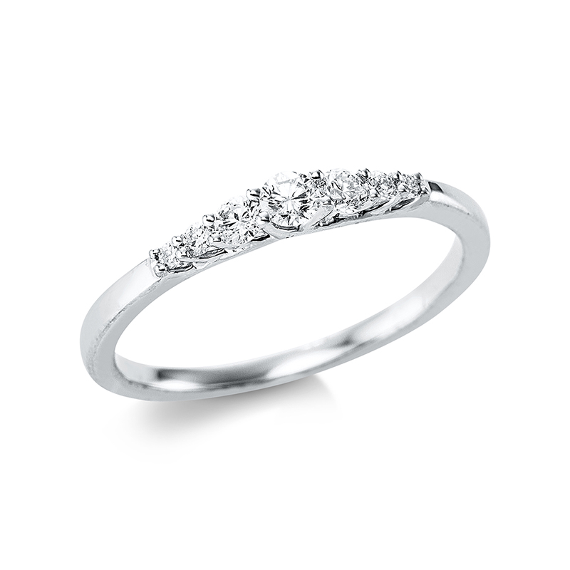 Ring 18 kt WG, 1 Brill. 0,08 ct, TW-si, 6 Brillanten 0,17 ct, TW-si, H:2,7 mm, Weite:54