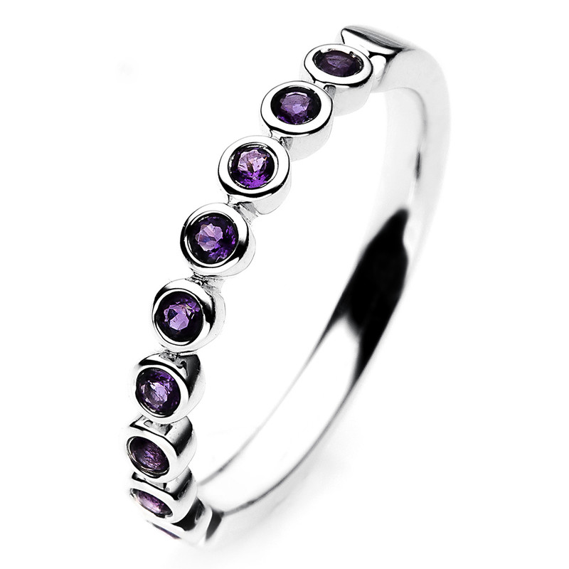 Ring 18 kt WG, 9 Amethyste 0,19 ct lila, Weite:56