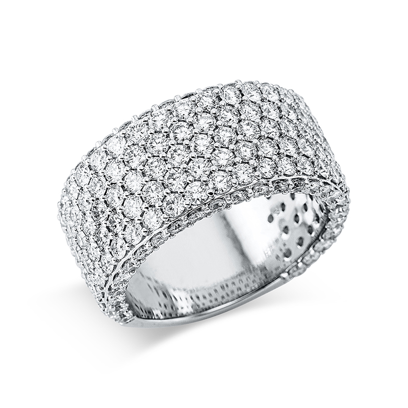 Ring 18 kt WG, 50 Brillanten 1,11 ct, TW-si, 118 Brillanten 3,27 ct, TW-si, Weite:56
