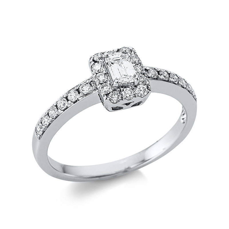 Ring 18 kt WG, 1 Sm.schliff 0,23 ct, TW-si, 24 Brillanten 0,32 ct, TW-si, Weite:54