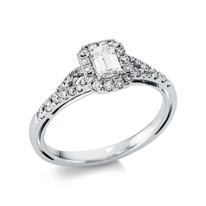 Ring 18 kt WG, 1 Sm.schliff 0,35 ct, TW-si, 36 Brillanten 0,31 ct, TW-si, Weite:54