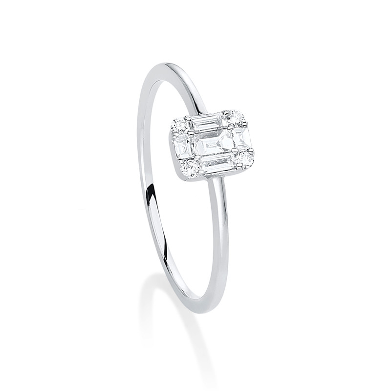 Ring 18 kt WG, 4 Brillanten 0,04 ct, TW-si, 5 Baguette 0,16 ct, TW-si, Weite:54