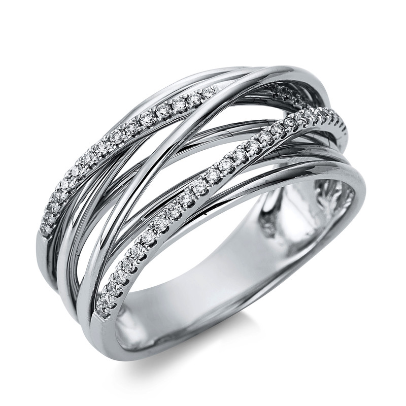 Ring 18 kt WG, 48 Brillanten 0,19 ct, TW-si, Weite:53