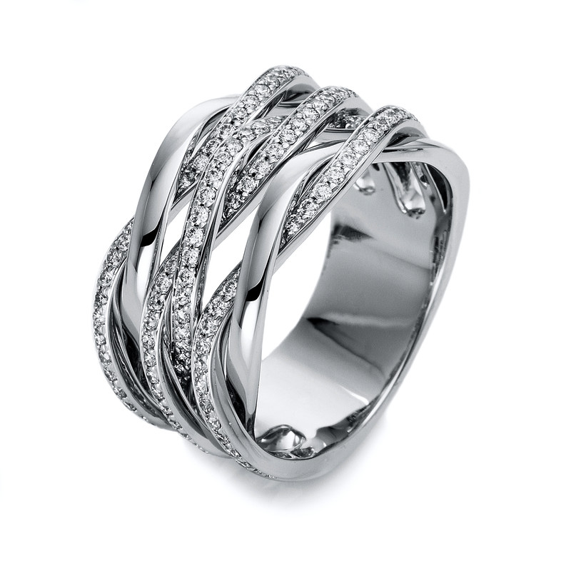 Ring 18 kt WG, 152 Brillanten 0,80 ct, W-si, B:11,5 mm, Weite:54
