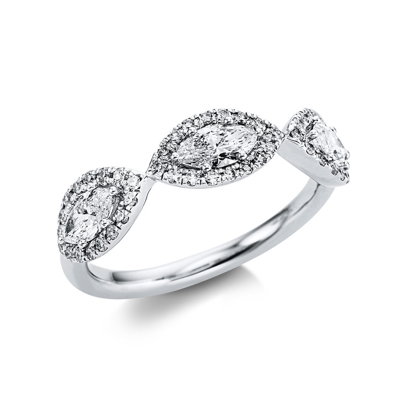 Ring 18 kt WG, 51 Brillanten 0,97 ct, TW-si, 3 Brillanten 0,73 ct, TW-si, H:5,9 mm, Weite:54