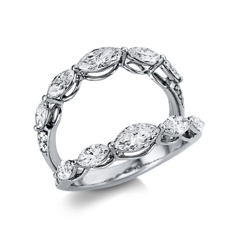 Ring 18 kt WG, 6 Navette 1,22 ct, F-vsi, 4 Navette 0,42 ct, W-vsi, 8 Brillanten 0,14 ct, TW-vsi, B:16,8 mm, Weite:53