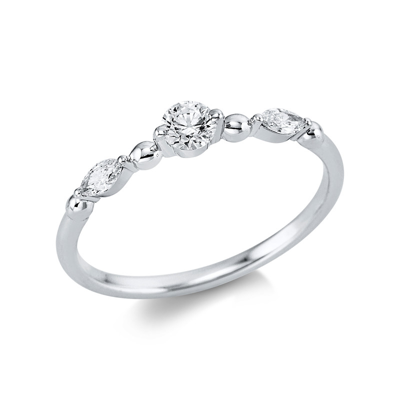 Ring 18 kt WG, 2 Navette 0,14 ct, F-si, 1 Brill. 0,19 ct, TW-si, H:3,4 mm, Weite:54