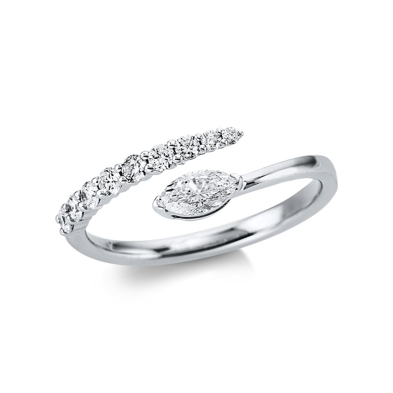 Ring 18 kt WG, 9 Brillanten 0,25 ct, TW-si, 1 Navette 0,21 ct, TW-si, Weite:54