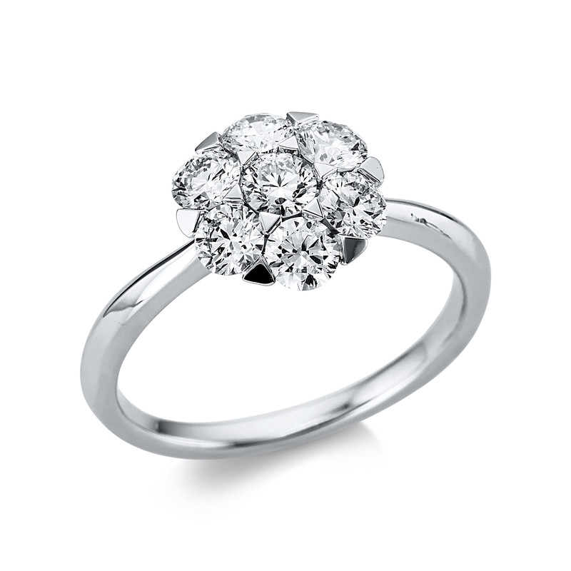 Ring 18 kt WG, 7 Brillanten 1,12 ct, TW-si, H:9,9 mm, B:9,9 mm, Weite:54