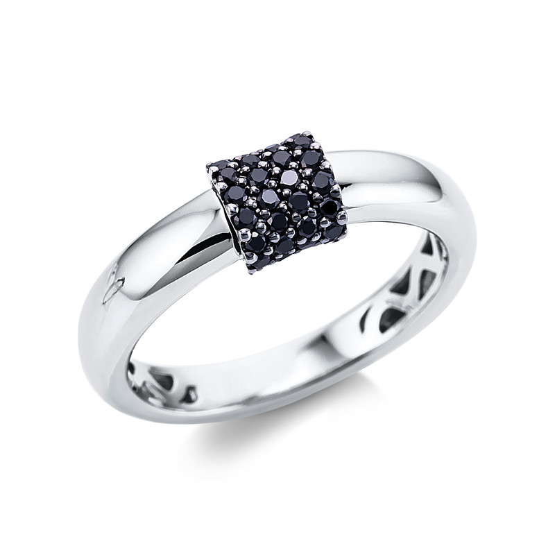 Ring 18 kt WG, Fassung teils schwarz rhodinie, 30 Brillanten 0,22 ct, schwarz, H:5,8 mm, B:6,1 mm, Weite:54