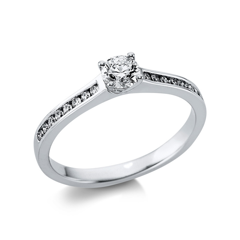 Ring 18 kt WG, GIA7383727549, 16 Brillanten 0,14 ct, TW-si, 1 Brill. 0,31 ct, F-si, Weite:54
