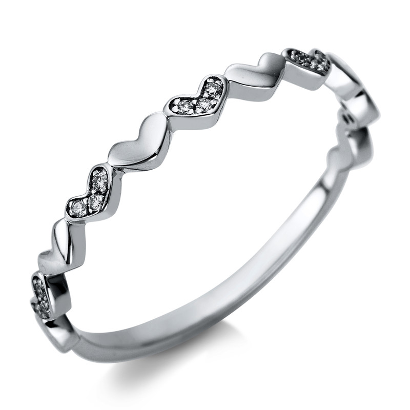 Ring 18 kt WG “Herzen”, 15 Brillanten 0,05 ct, TW-si, B:2,1 mm, Weite:54