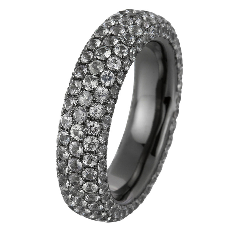 Ring 18 kt WG, schwarz rhodiniert, 195 Saphire 4,28 ct weiß, B:5,8 mm, Weite:56