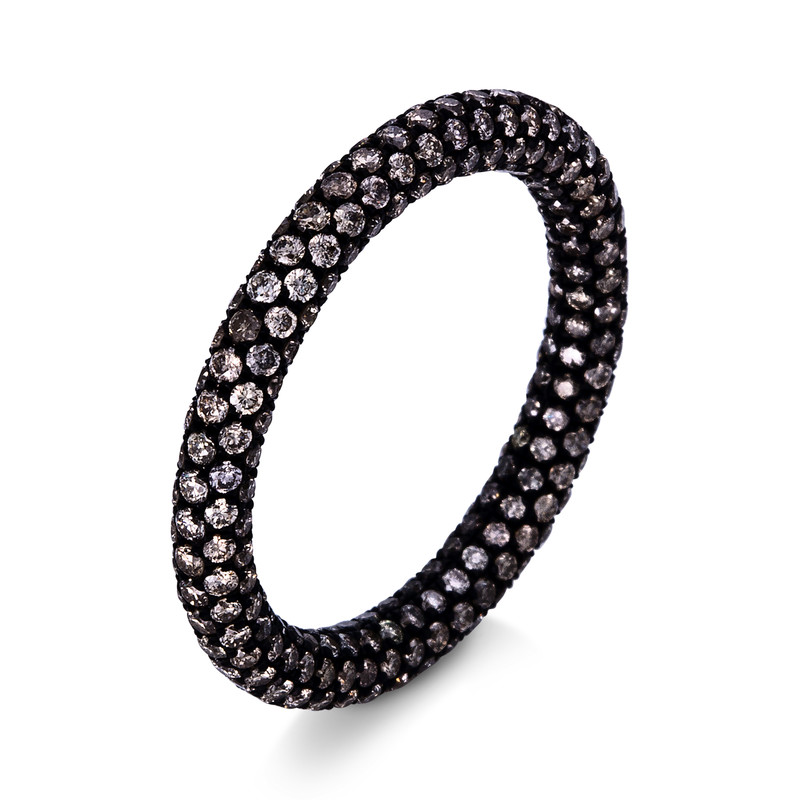 Ring 18 kt WG, schwarz rhodiniert, 338 Brillanten 1,91 ct, braun, S:3,0 mm, Weite:54
