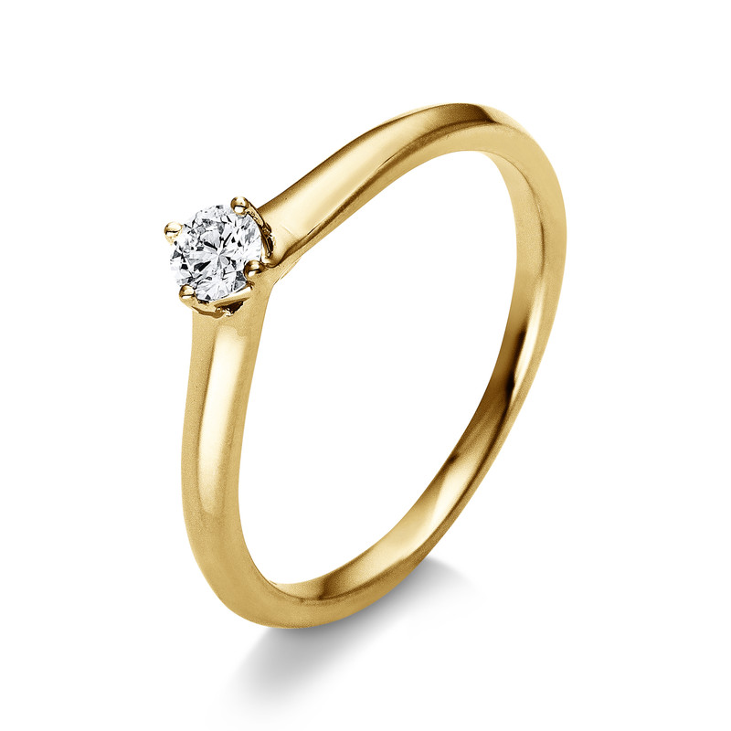 Ring 4er-Krappe 14 kt GG, 1 Brill. 0,15 ct, TW-si, H:4,3 mm, B:4,3 mm, S:2,5 mm, Weite:54